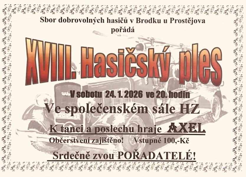 24.1. XVIII. HASIČSKÝ PLES OD 20:00 HODIN NA SÁLE HZ